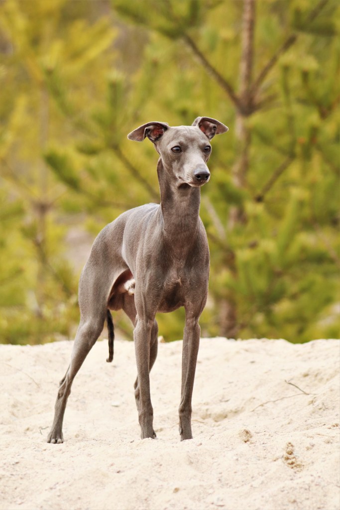 Kelli taas aiheutti hieman hämmennystä ja luin sen tuloksia moneen kertaan, välillä päätäni raapien. Kellikin on vapaa kaikista testatuista sairauksista, mutta sen väri onkin sitten melko mielenkiintoinen. En rehellisesti sanottuna ole edes osannut epäillä siinä mitään kummallista, vaikka nyt testauksen ansiosta ymmärränkin miksi se on niin sininen isabella. Kelli nimittäin kantaa tan-merkkejä ja se aiheuttaa vahvaa sinistä varjostumista sen väriin. Ja koska Kelli nyt ei koskaan halua olla se tavallisin tyyppi, sen tan-merkit ovat muotoa Ayt, eli alleeliyhdistelmä, jossa on sekä soopeli että tan-merkit samassa kromosomissa. Tämä ei ole kovin yleinen millään rodulla, saati sitten italianvinttikoiralla, jolla tan-merkkiväriä esiintyy erittäin harvoin! Näin ollen Kelli voi toisen tan-kantajan kanssa periyttää tan-merkkivärisiä pentuja ja joka tapauksessa se periyttää tätä harvinaista Ayt alleeliyhdistelmäänsä eteenpäin. Se aiheuttaa isabellalle koiralle vahvaa varjostumista ja maskia, vaikka koira ei geneettisesti olisikaan maskillinen. No Kelli on kyllä myös maskillinen EmEm, jota osasinkin odottaa.
