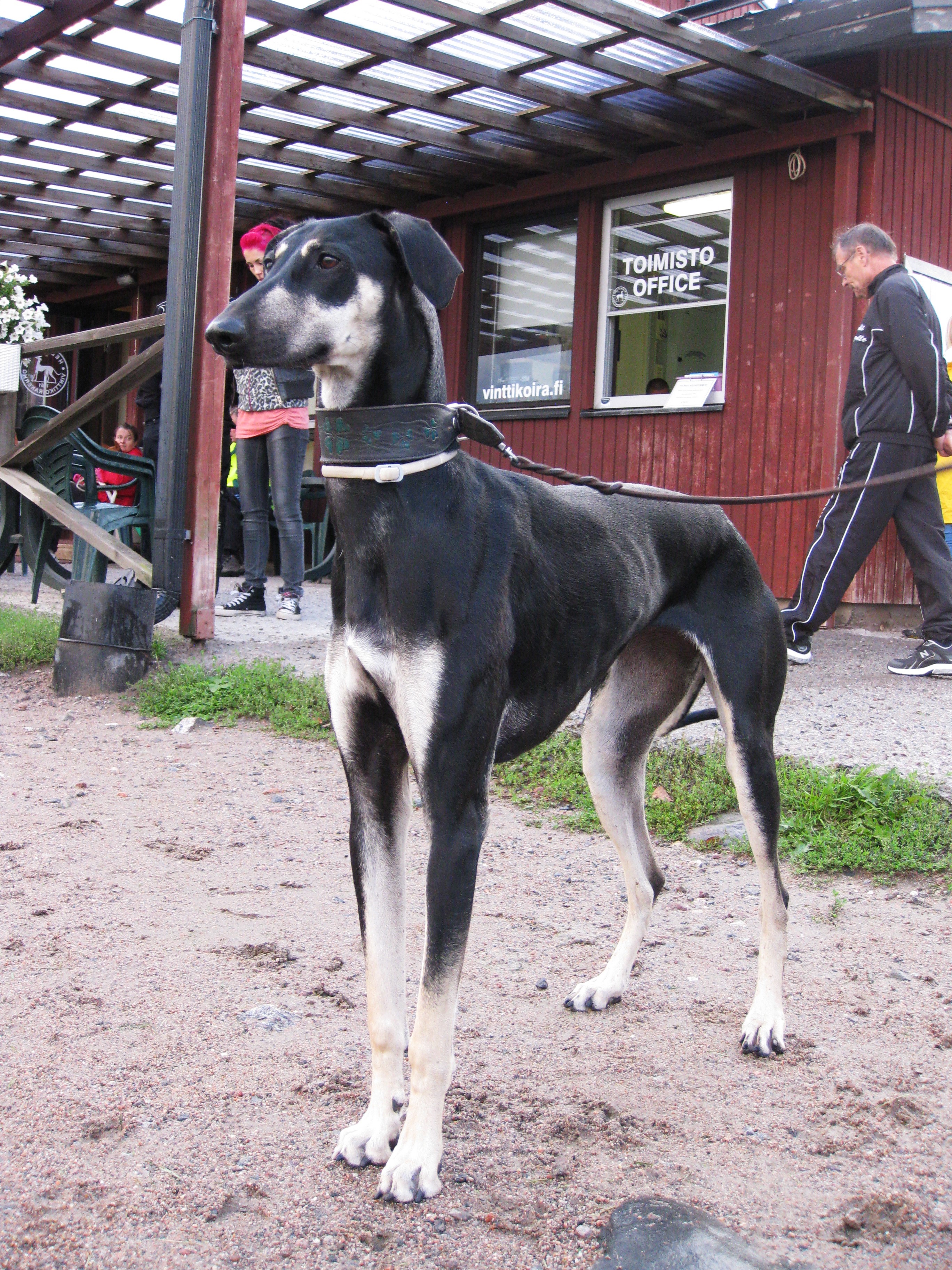 Tan-merkkivärisellä koiralla on sloughikielessä mantteli.