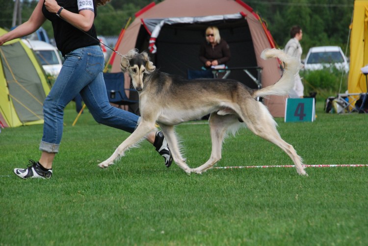 Jos tan-merkkivärisellä koiralla on sekä grizzle että brindle, sen eumelaniinialue on raidoittunut. Toisin kuin black&brindlellä, grizzle brindlellä ei usein ole lainkaan raitoja feomelaniinialueilla vaan jalat ja naama jäävät raidattomiksi. Esimerkkikuvien salukit ovat hyvin tyypillisiä tan-merkkivärisiä grizzlejä, joita myös slougheissa esiintyy.