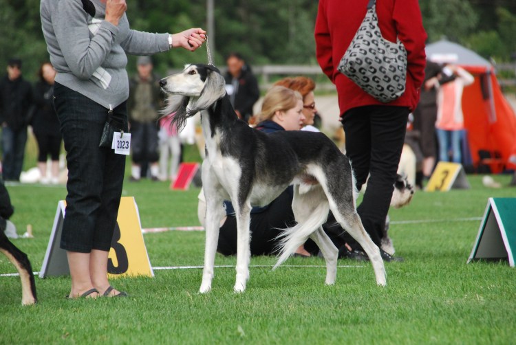 Maskittomalla manttelikoiralla on usein laajat feomelaniinialueet kuonon sivuilla. Silmien ympärykset ja kuonon päällinen on silti tumma. Kuvan sloughi on todennäköisesti geneettisesti maskillinen, mutta sen maski on niin niukka että sopinee malliksi myös tähän kohtaan. Maskillisen ja maskittoman ero saattaa olla hyvin pieni. Esimerkkikuvan saluki on maskiton black&tan.