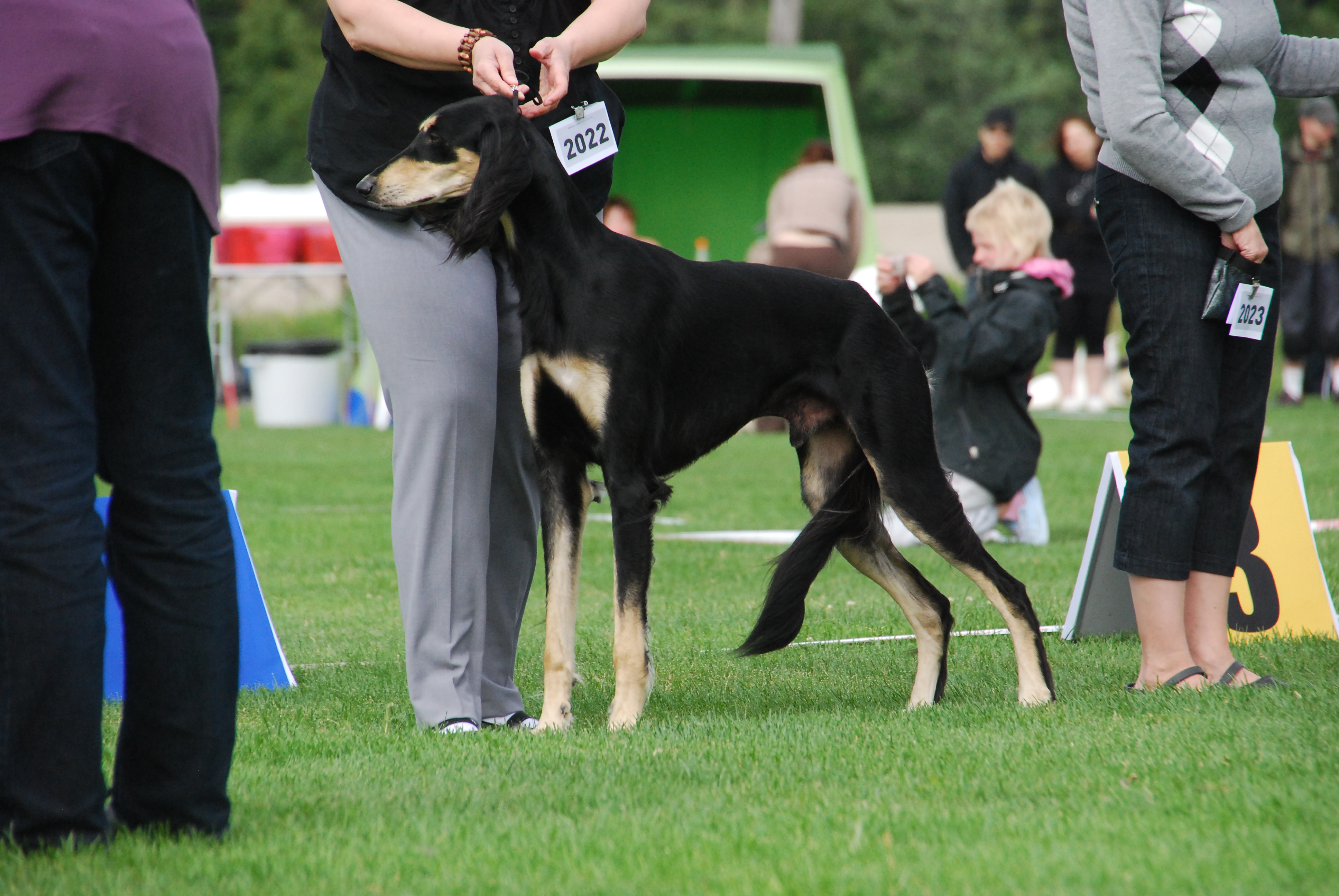 Myös manttelikoiralla voi olla maski, jolloin koiran pää saattaa olla lähes musta. Yleensä sillä on kuitenkin silmien yläpuolella tan-pisteet. Erittäin vahva maskillinen manttelikoira voi olla lähes kokonaan musta, mutta yleensä feomelaniinia on nähtävissä edes jalkojen sisäpinnalla. Hyvin niukilla tan-merkeillä oleva sloughi saattaa näyttää syntyessään mustalta, mutta merkit tulevat selvemmin esiin pennun kasvaessa.