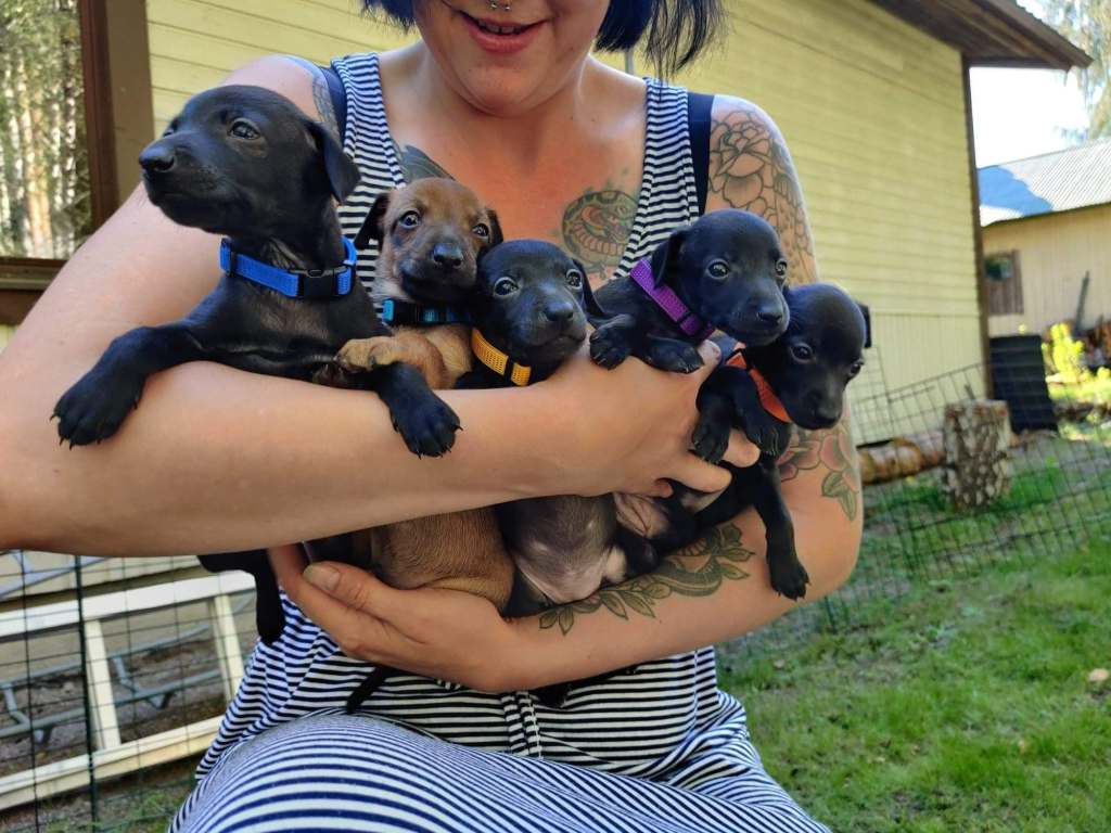 Halusin nimetä pentueen teemalla, joka liittyy isän nimeen. Näinpä pennut nimettiin Omegan kellojen mukaan. Pentueessa on kaksi urosta ja kolme narttua. Toinen uroksista on fawn, muut pennut sealin värisiä.