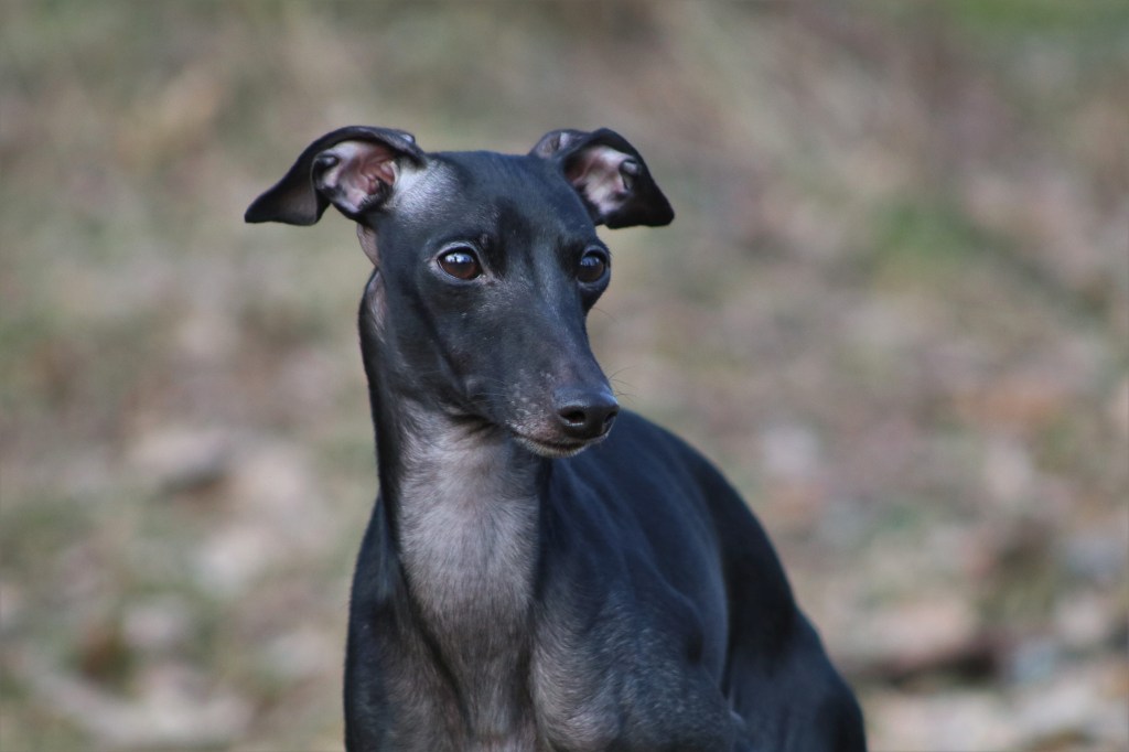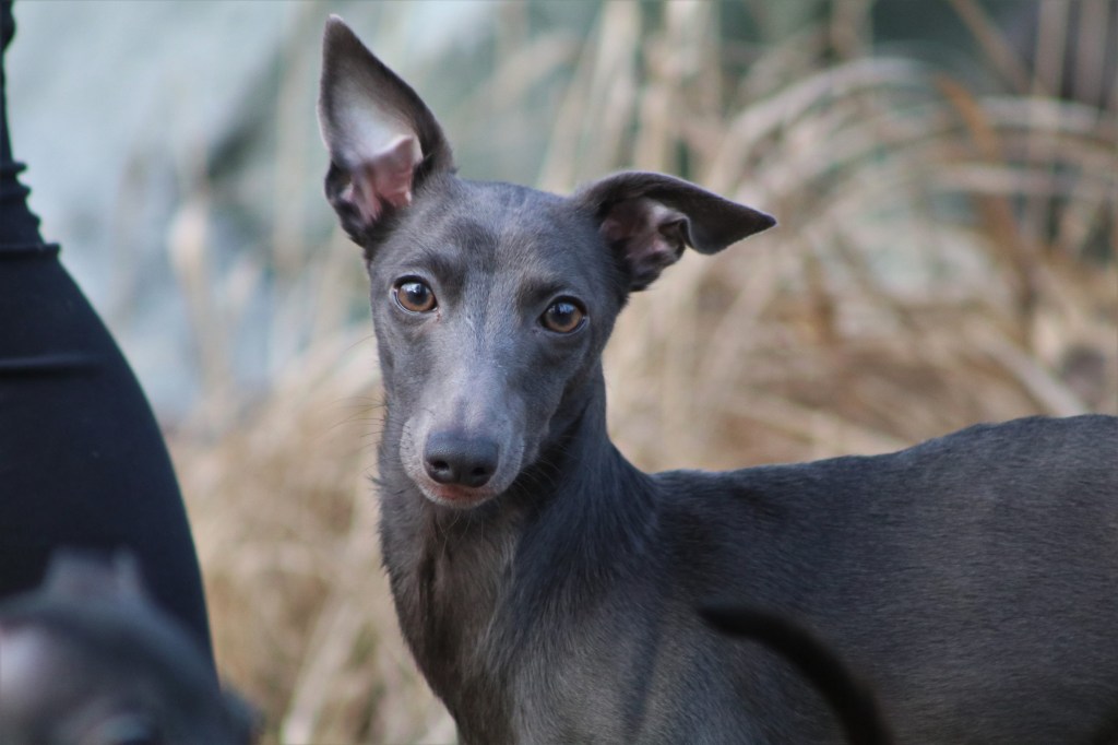 Italianvinttikoirien mustat ja siniset koirat ovat tyypillisesti dominanttimustia. K-lokus määrittää onko koira dominanttimusta KB vai soopeli Ky, jota italianvinttikoirissa kutsutaan isabellaksi. Brindleä Kbr ei rodussa esiinny. Koira, joka on geneettisesti musta mutta kantaa soopelia eli KBKy on tyypillisesti ulkoasultaan karhunmusta eli ns. seal. Se saattaa olla lähes täysin musta, joka taittaa ruskeaan tai sitten hyvin vahvasti ruskeansävyinen. Sininen koira on dominanttimusta, jolla eumelaniini on dilutoitunut siniseksi. Sen määrittää värilokus D. Musta pigmentti D on dominoiva verrattuna siniseen dd, joten mustapigmenttinen koira voi kantaa piilossa sinistä, koira on silloin Dd. Sinipigmenttinen koira on resessiivinen, joten kaksi sinipigmenttistä koiraa eivät voi tehdä mustia pentuja. Värilokus D toimii vastaavasti myös isabellan koiran kanssa, eli D tarkoittaa silloinkin mustaa eumelaniinia ja dd liudentaa kaiken mustan pigmentin siniseksi ja isabellasta koirasta tulee tällöin sinifawn.